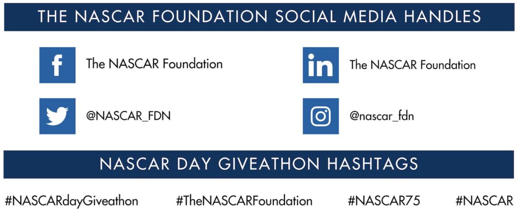 - Corporate Social Responsibility: Is there an internal cause that your company is passionate about? Streamline your donations to that cause or have your nonprofit partner sign up to participate in the NASCAR Day Giveathon. Your employees’ donations can also go directly to that nonprofit. Contact info@nascardaygiveathon.org to chat about how we can make it happen together.