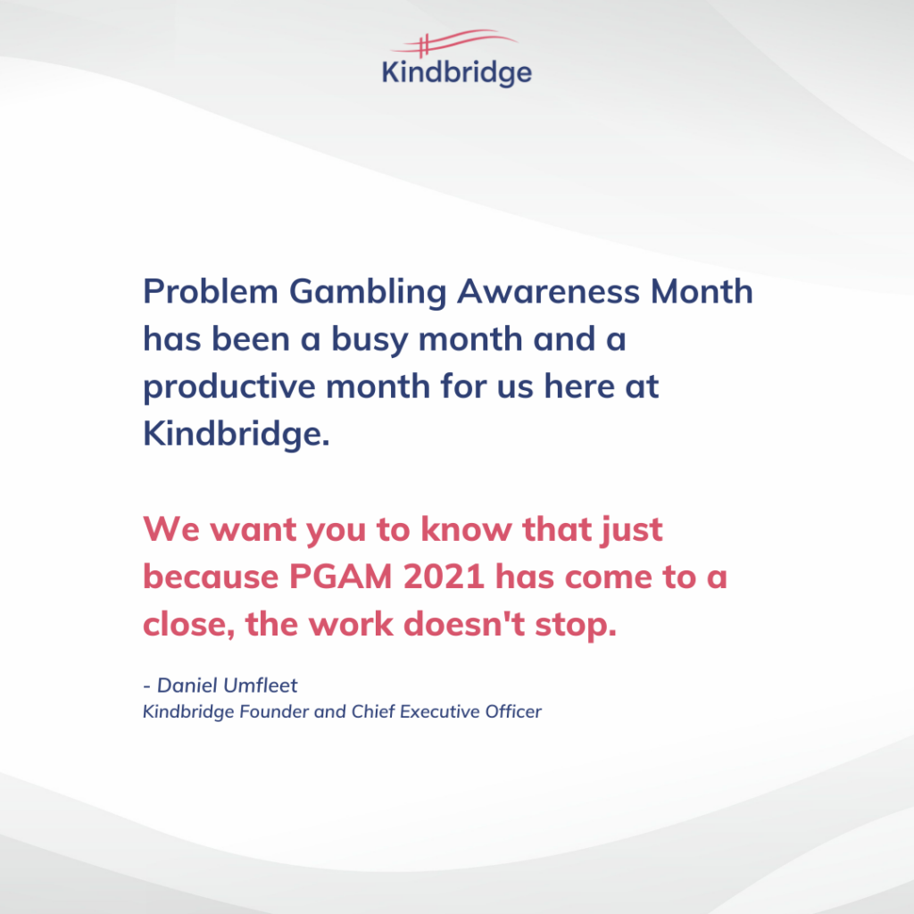 Problem Gambling Awareness Month has been a busy month and a productive month for us here at Kindbridge. We want you to know that just because PGAM 2021 has come to a close, the work doesn’t stop.