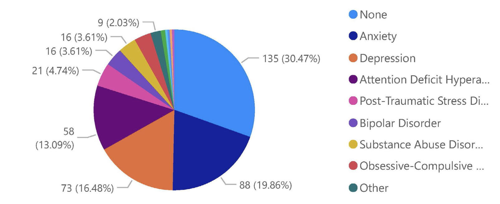 The term comorbidity is used to describe the simultaneous presence of two or more diseases or medical conditions in a patient. This is the current breakdown of mental health condition comorbidities from our client profile for the summer of 2024 reporting period: