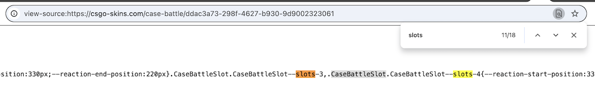 Within the site’s source code we find 18 instances of “slots” as an application, even though the word is not used on the publicly visible site. If publicly visible, this word would get the profile flagged given that they are not regulated for gambling in the USA, and that a number of Followers are under the legal gambling age. Of particular importance is the “CaseBattleSlot” (highlighted in grey in the source code screenshot) which is a term that is directly linked to a number of known CSGO gambling influencers (perform a Google search). This includes JUICY who was identified in the Coffeezilla investigation as one of the biggest promoters of gambling to young CSGO players.