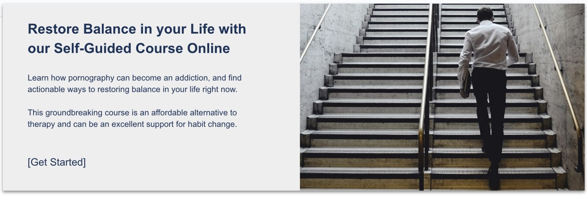 Whether you choose online counseling and/or the self-guided course, we encourage you to supplement your wellness strategy. You can do so by participating in healthy activities that provide similar dopamine and oxytocin responses in the brain that are partly responsible for your compulsive connection to porn. Please read and explore Healthy Alternatives to Pornography.
