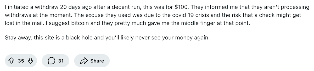 How is this any different for players on the regulated versus unregulated market? There is actually a defined problem. Given that the odds of coming out on top financially when sports betting are already slim, can you imagine how much more likely gambling debt could be if players were not able to withdraw their remaining funds? And what if they could not withdraw actual winnings when rollover requirements were met? This is something that occurs on the unregulated market. Below are screenshots of customer complaints from bettors who use popular online bookmakers from the unregulated market: